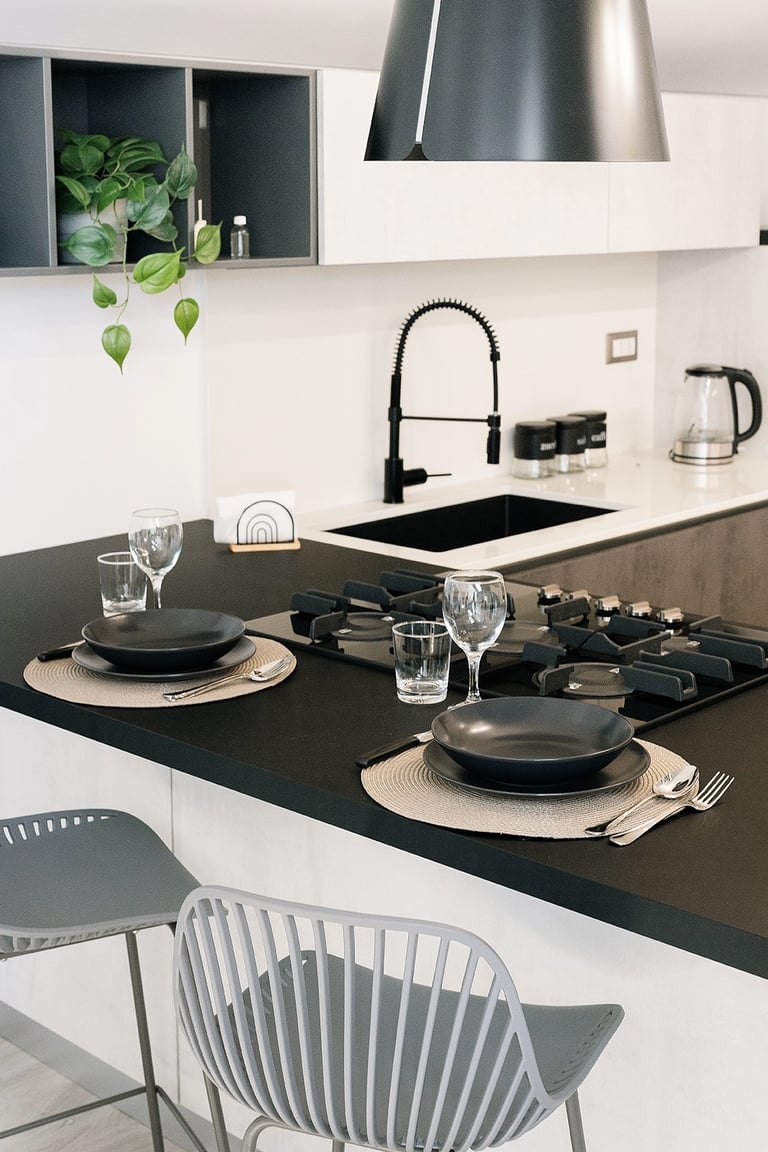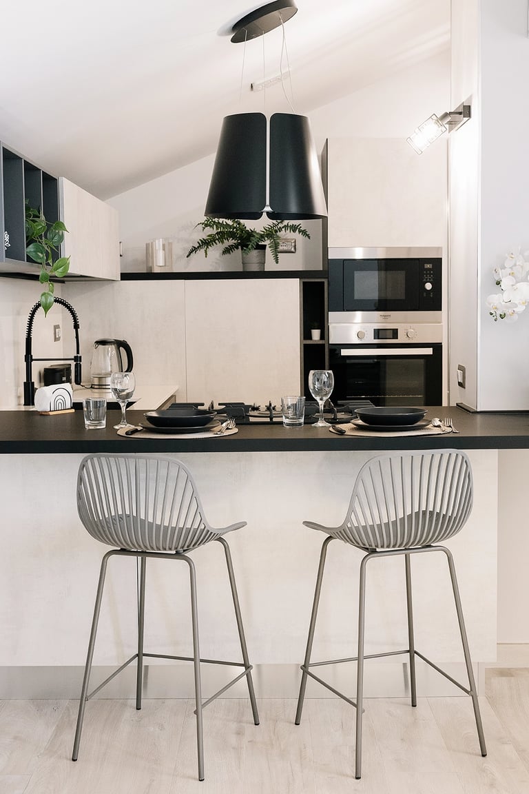 L’ampia cucina a vista è un vero gioiello: progettata con materiali di alta qualità e dotata di elettrodomestici moderni, è l’ambiente perfetto per chi ama cucinare e intrattenere.